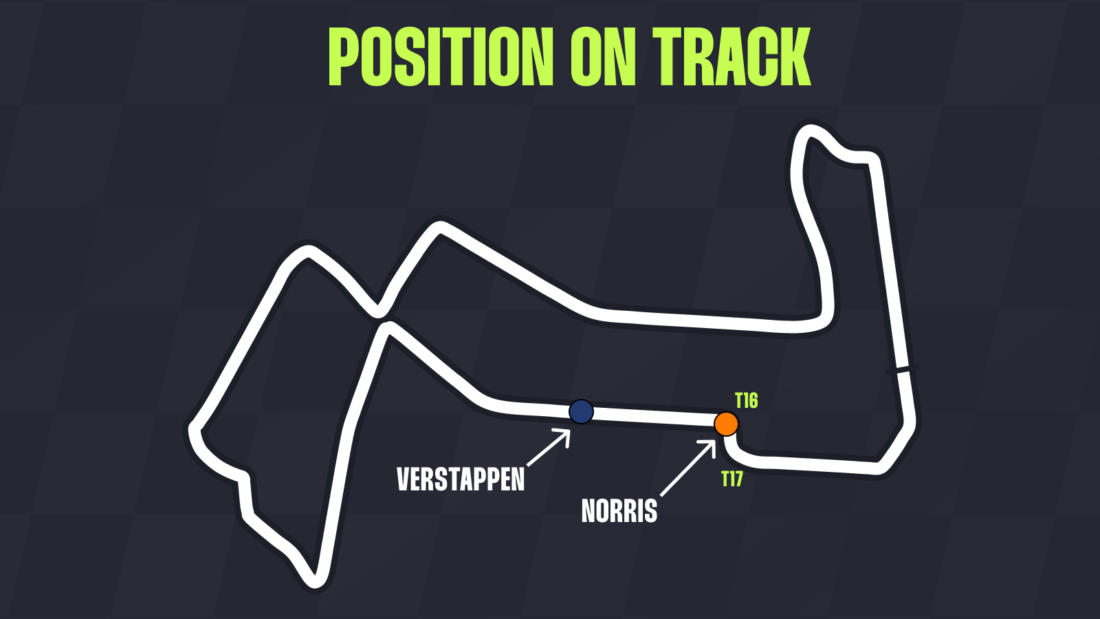 Although there was no close on-track encounter between the two drivers, Max claimed that the dirty air generated by Lando affected the car’s balance under braking, causing his mistake. Unfortunately, this claim cannot be definitively proven or disproven by the data.