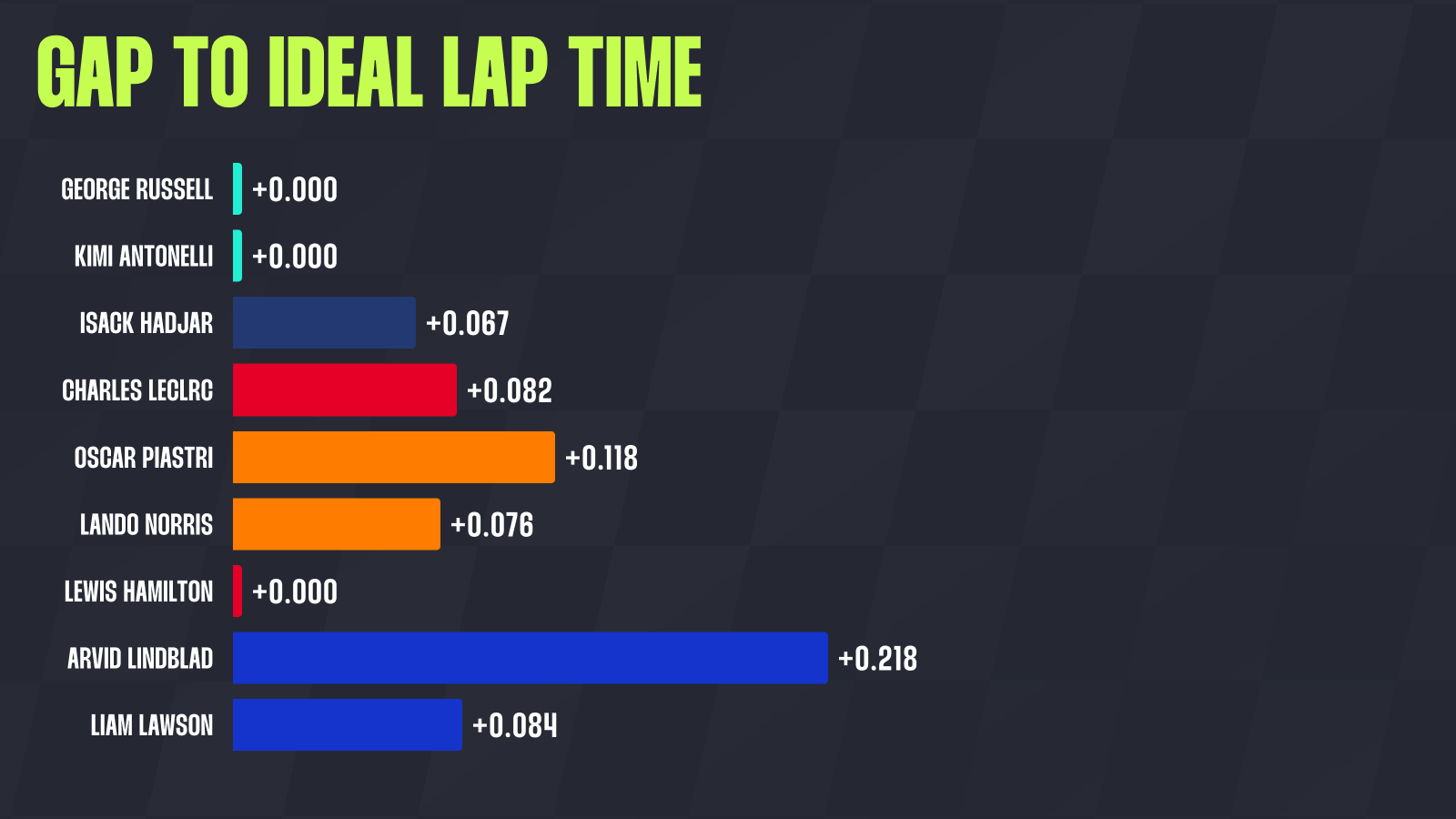 Isack Hadjar in the Red Bull claimed third with a deficit of 0.785 seconds, followed by Leclerc at 0.809 seconds, while the McLaren pair finished qualifying in fifth and sixth, trailing the pole time by 0.862 and 0.961 seconds respectively.