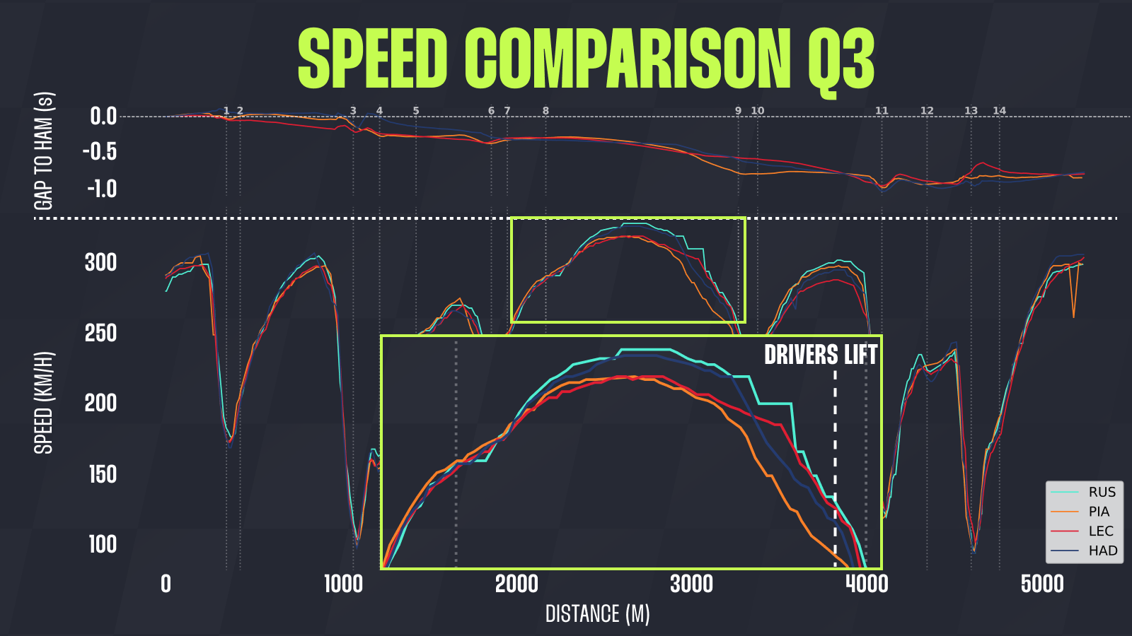 However, this equation isn’t quite so simple, as we must factor in variables such as aerodynamics, tyre wear (which is directly linked to aero), strategy, the driver factor, and so on.