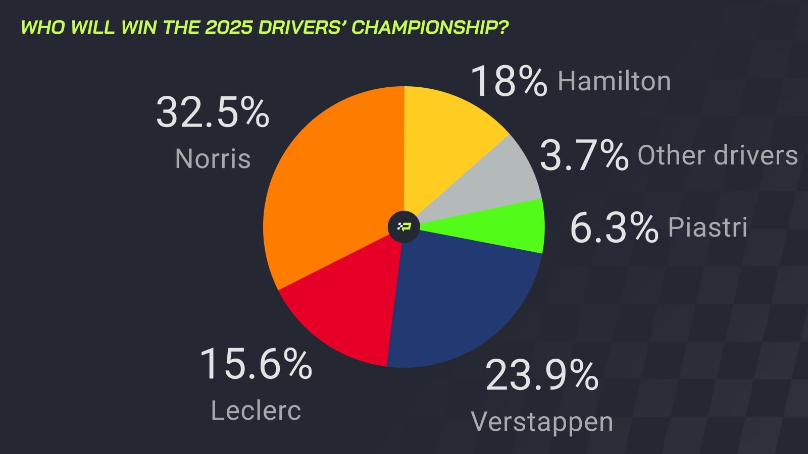 Coming in at P2 was Max Verstappen with a little under quarter the vote while your title winner was Lando Norris who secured 32.5% of the vote.