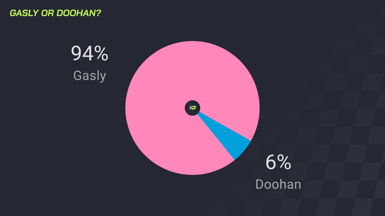 Another one-sided affair comes at Alpine with Pieere Galsy taking 94% of the vote share against Jack Doohan.