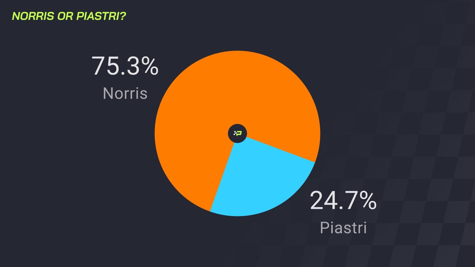 At McLaren, Piastri took a little over a quarter of the vote but 75.3% of you were confident Norris would win again.
