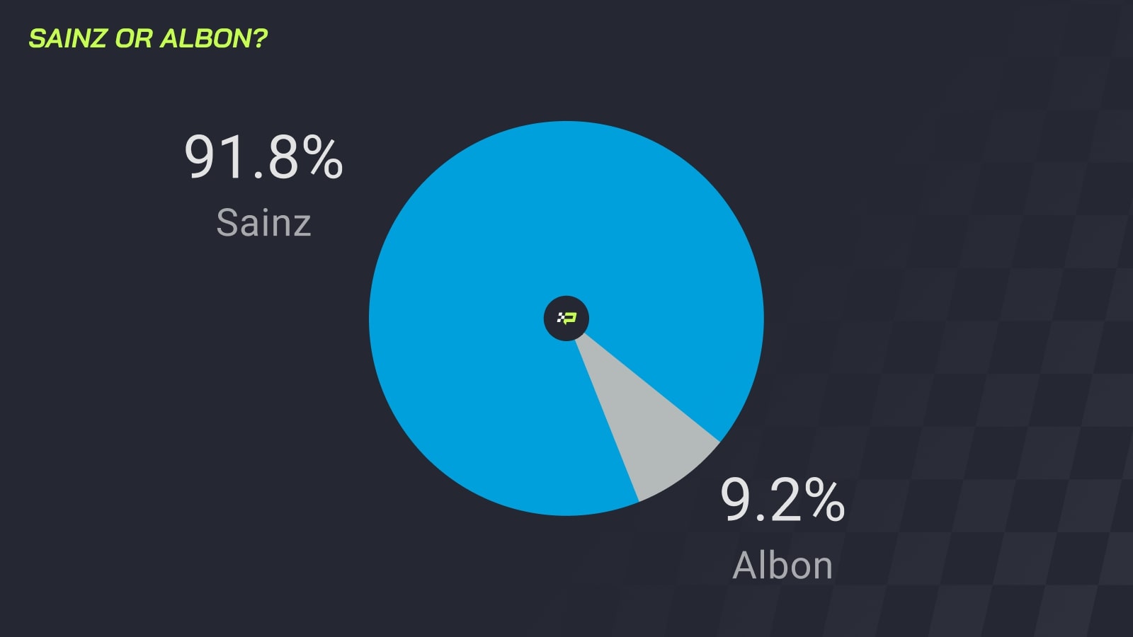 Carlos Sainz has been backed to hit the ground running with 91.8% of you believing he will beat Alex Albon in his first year at Williams.