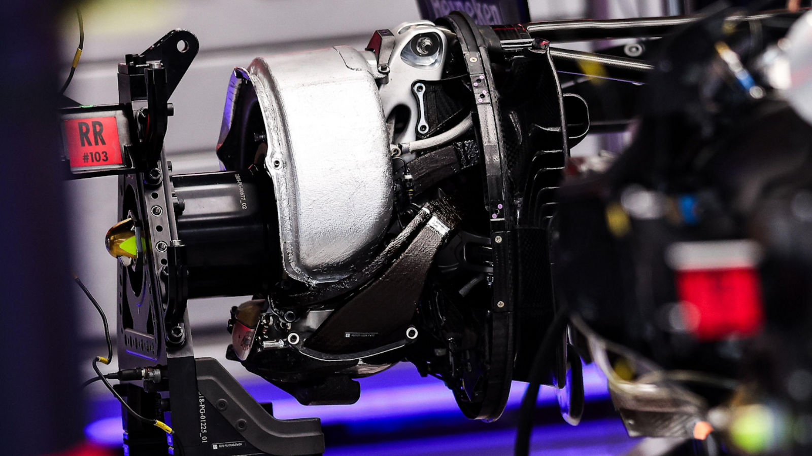 A close up of the bib damper on the Ferrari SF-25.
