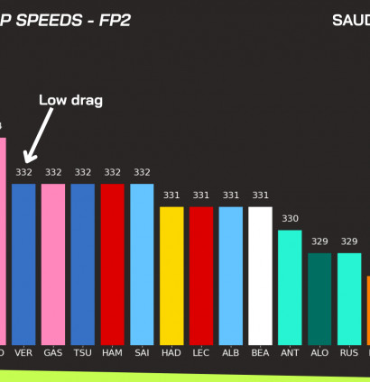Interestingly, Sauber leads this metric – clearly going all-in on exploiting the low-drag concept of their car.