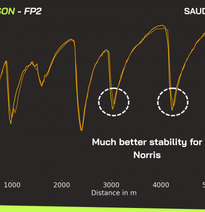 On the other hand, Norris demonstrated much better stability through the flowing section of Turns 10, 11, and 12.