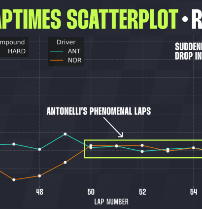 He simply did not allow Lando to close the gap enough to launch an attack using DRS. That is, until the penultimate lap, when Antonelli’s time suddenly dropped and he lost the position.
