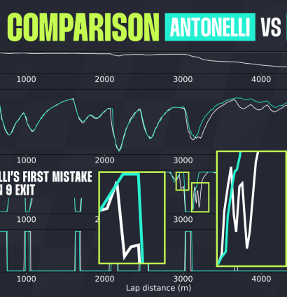 By analysing both the onboard footage and the telemetry, we can see that Antonelli made two errors in the middle sector of the track, losing significant time.