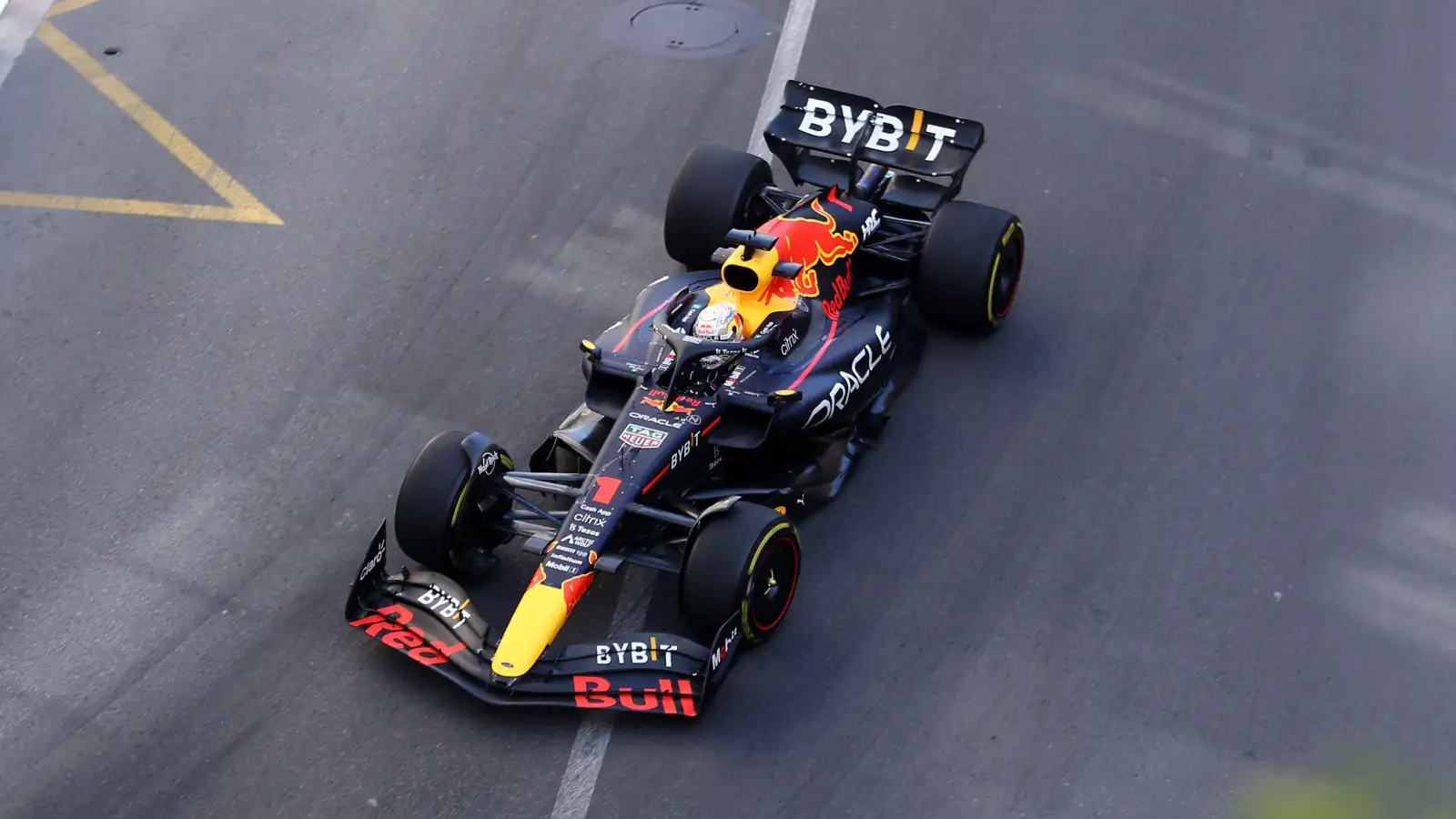 Red Bull's Max Verstappen on track during the Monaco Grand Prix. Monte Carlo, May 2022.