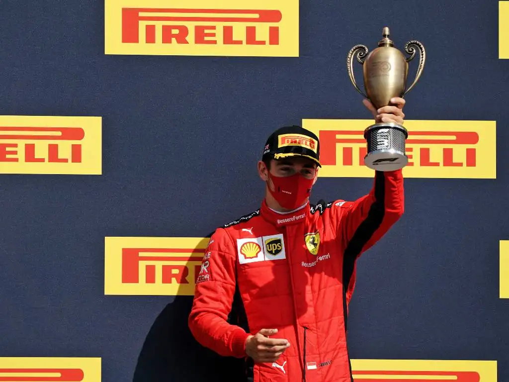 Charles Leclerc on the podium after finishing third in the 2020 British Grand Prix