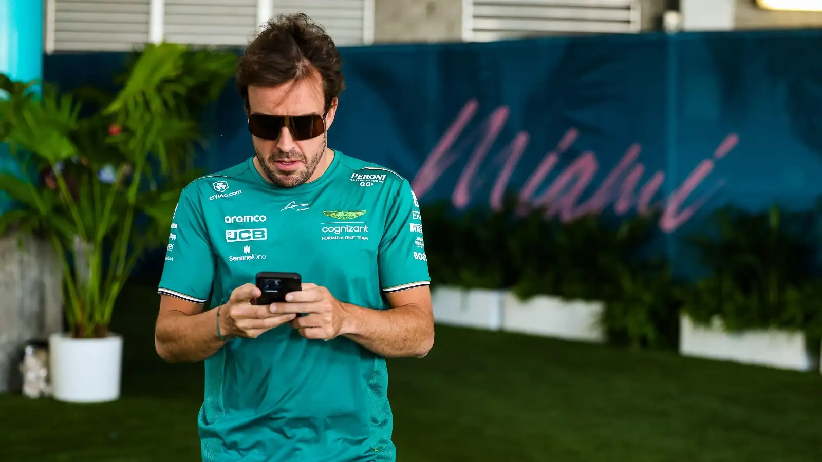 Fernando Alonso on his phone.