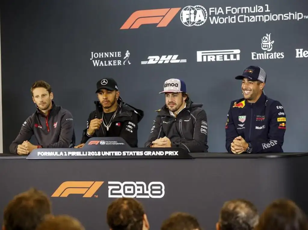 Daniel Ricciardo, Fernando Alonso, Lewis Hamilton and Romain Grosjean faced the media at the Circuit of the Americas.