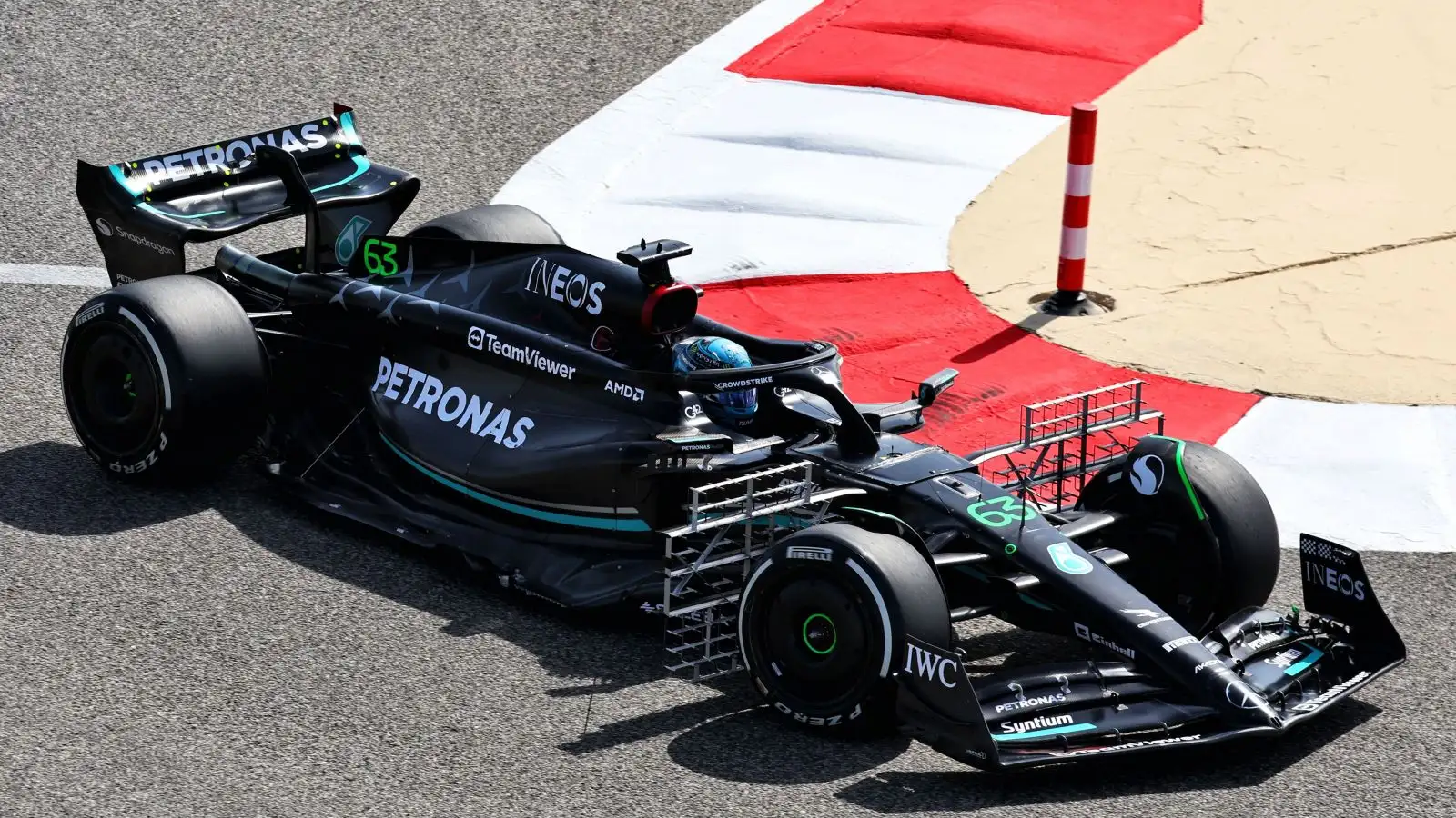George Russell driving the Mercedes W14 in pre-season testing. Bahrain, February 2023.