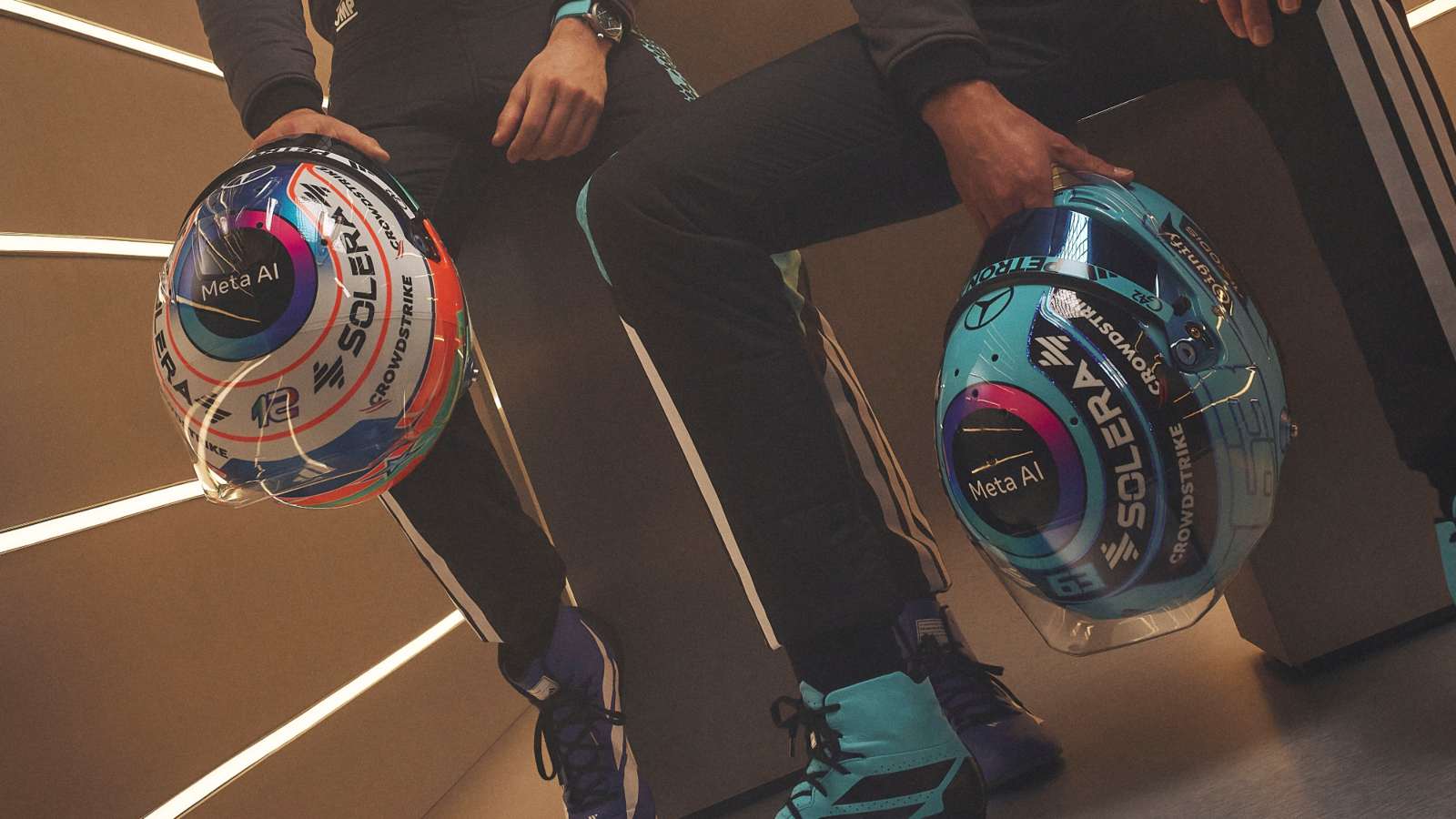 Carrying on with his own theme since arriving at Mercedes in 2022, George Russell has gone with sky blue throughout, with black flourishes to incorporate Mercedes’ sponsors and his own number, 63.