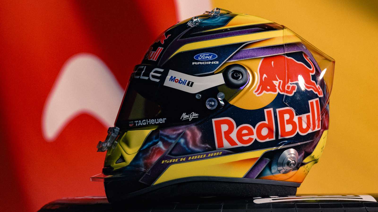 It’s a change of colour scheme for Isack Hadjar as he makes the move to Red Bull for 2026, swapping a mostly neon green design for yellow, purple and black as he prepares to partner Max Verstappen.