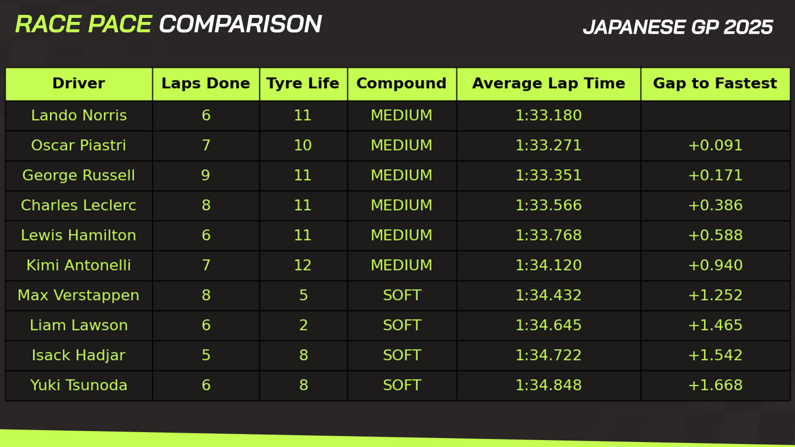 Tsunoda has exceeded expectations in his debut with Red Bull. With a run plan very similar to that of Verstappen, he appears to have found the rhythm that Liam Lawson was unable to find in his first two and only races with the RB21.