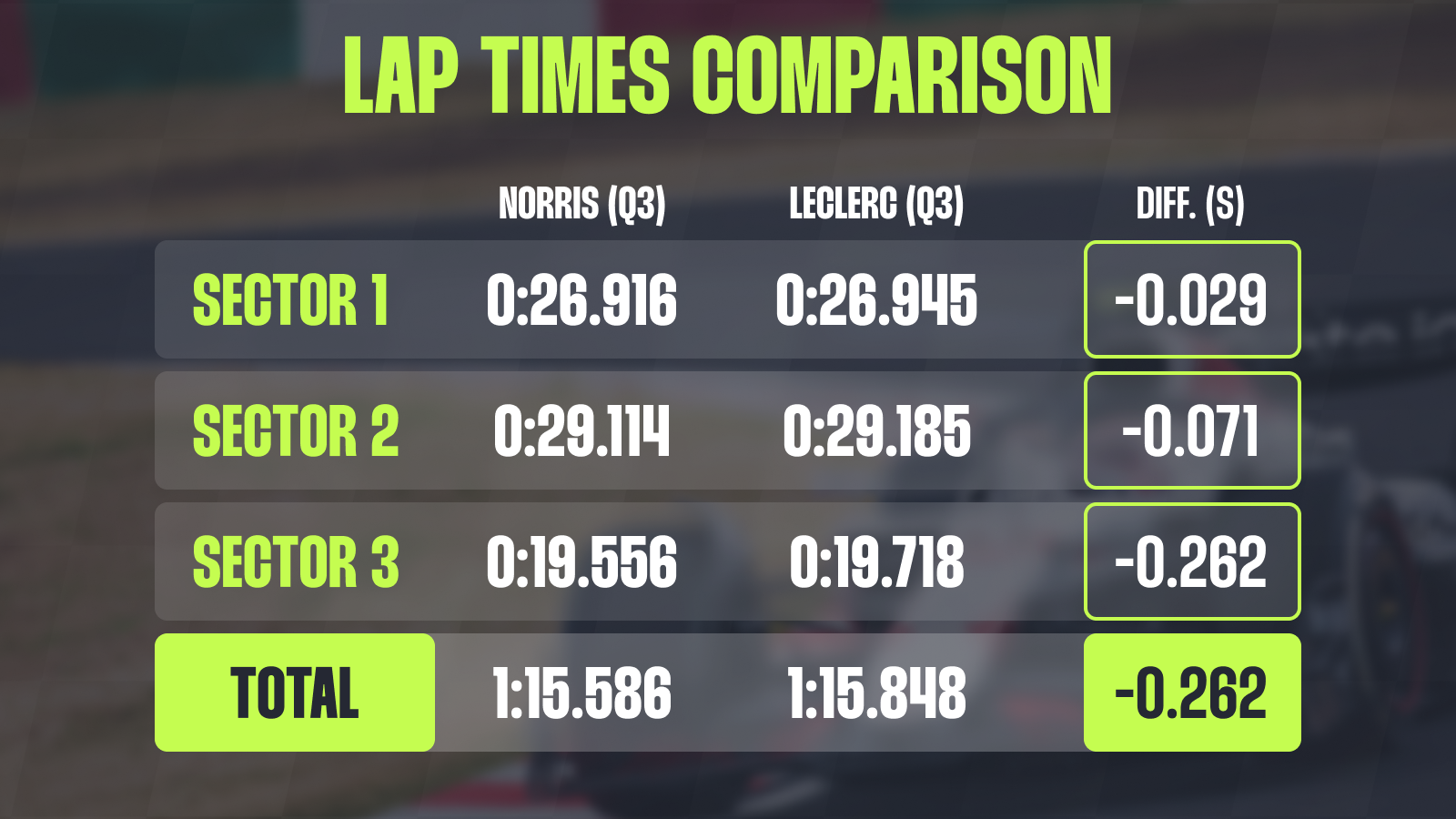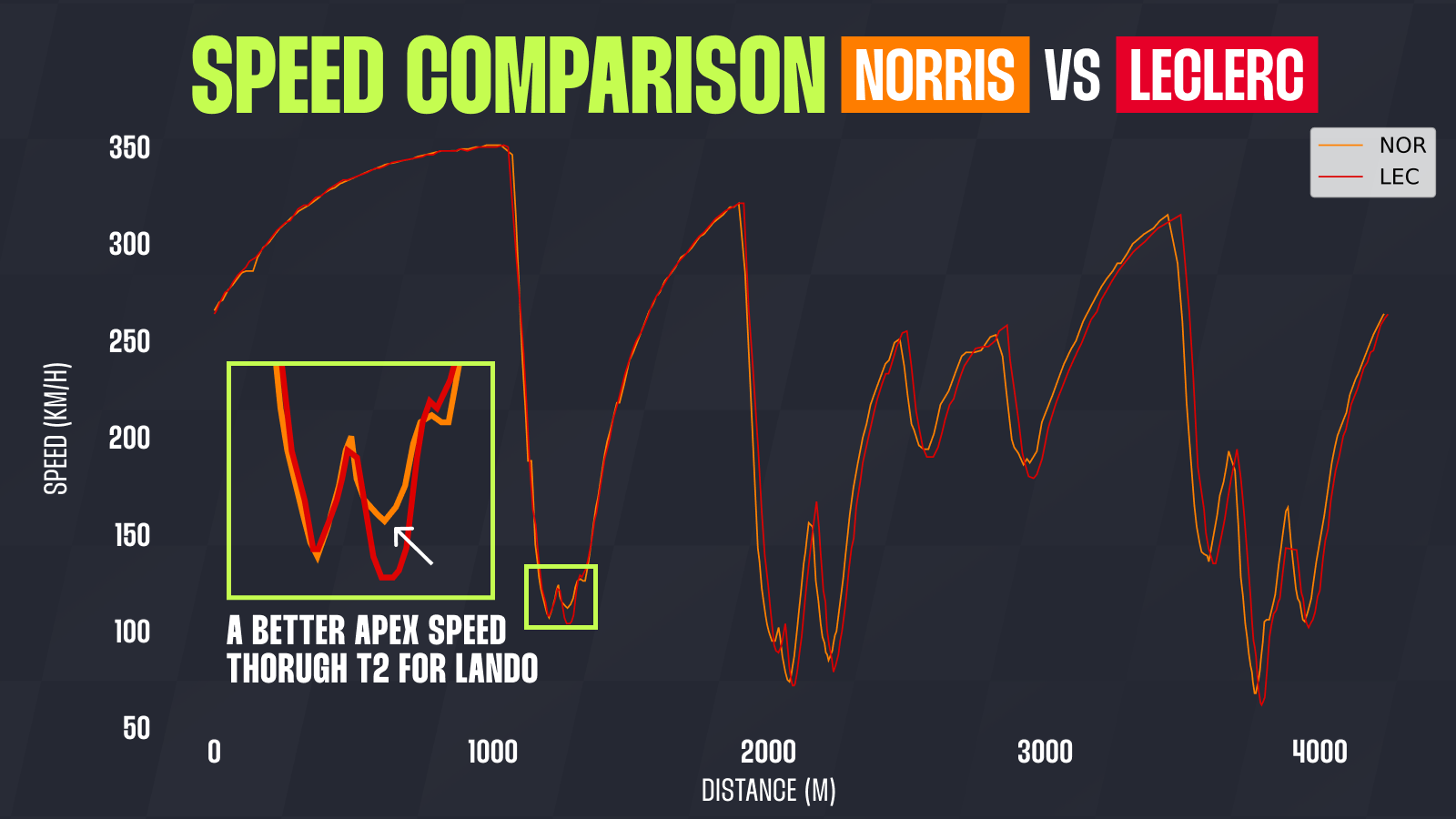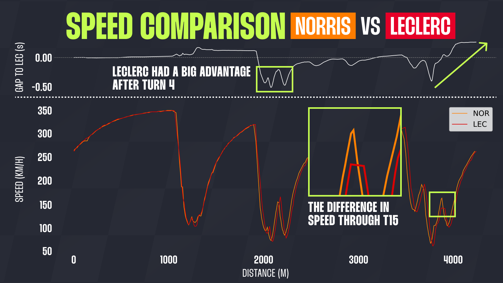 When comparing the pole lap with second-placed Charles Leclerc, we can see where Lando gained this big advantage.