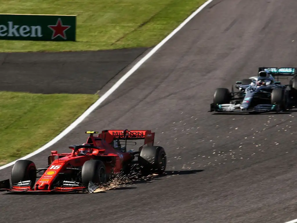 Lewis Hamilton, who was closely behind Leclerc at the time, complained over team radio, saying: “How he’s not been given a warning flag I don’t know,” while he was also hit by several pieces of debris from the SF90.