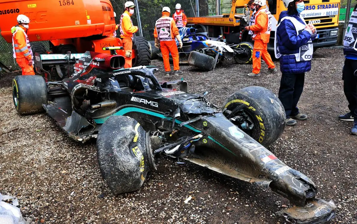 As Bottas looked to defend against Williams’ George Russell on the approach to Tamburello during the Emilia Romagna Grand Prix, the pair collided at high-speed, though both thankfully walked away unhurt.