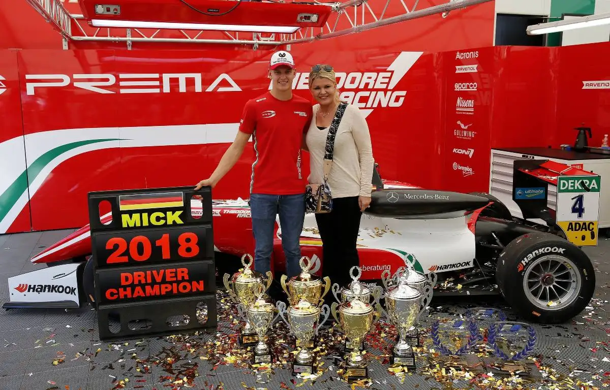 Mick Schumacher and his mother, Corinna, after winning the 2018 Formula 3 European Championship