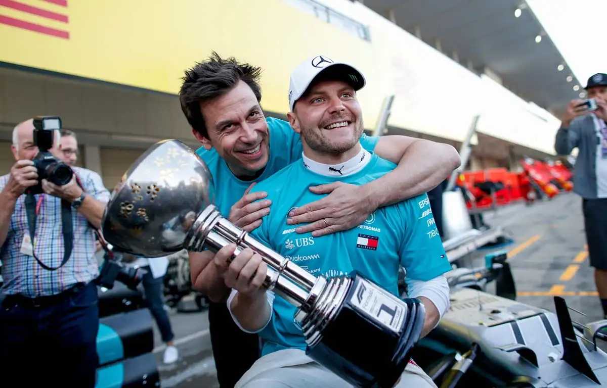 Toto Wolff and Valtteri Bottas celebrate the 2019 Japanese Grand Prix