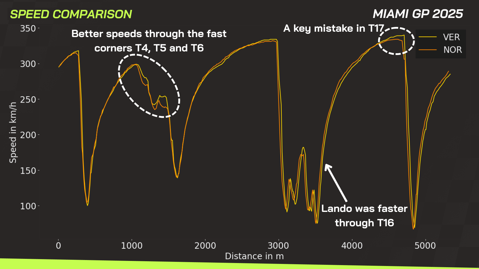 Max made his gains through the fast sequence of corners – Turns 4, 5, and 6 – as well as in the slower corners of Sector 2. Norris was significantly quicker through Turn 16, and just before entry to Turn 17, their times were virtually identical. However, the Brit ran too aggressively over the kerbs in T17, lost valuable time, and ultimately threw away pole position.